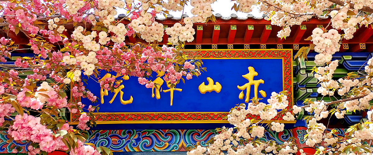 적산사찰은 길조평화밸리(吉祥平安谷) 서쪽에 있으며 당(唐)식 건물을 본떠서 지은 것이다.주로 원인(圆仁) 입당구법관(入唐求法馆)과 적산각(赤山阁) 두 부분으로 구성되어 있으며, 대지 1만 6천 평방미터, 건평 3천여평방미터 규모이다.이 중 원인(圆仁)입당구법관(入唐求法馆) 설치한 전시실은 모두 5개인데, ‘불법(佛法)을 사모함, 고해뗏목(苦海船筏), 자각대사(慈觉大师), 구법순례(求法巡礼), 공성원만(功成圆满)'이다.수·당의 불교 발전사와 원인(圆仁) 스님이 당나라에 들어와 불법(佛法)을 구하고 귀국한 뒤 일본에 적산사찰을 세우는 과정을 주로 보여 준다.사찰(禅院)은 산을 끼고 세워져 있고, 엄숙하고 장엄하며, 정자와 누대는 기세가 웅장하고 장관이다.원인(圆仁), 감진대사의 3대 제자이다.중국에서 10년간 그의 발자취는 장쑤(江苏), 산둥(山东), 허베이(河北), 산시(陕西), 산시(山西), 허난(河南), 안후이(安徽) 등 7개 성에 퍼져 있었다.가는 길에 범어, 한문, 법화현교를 배우고, 경서를 쓰고, 만다라공덕탱을 그리며, 지치지 않고 열심히 공부했다.