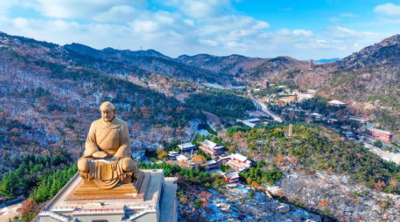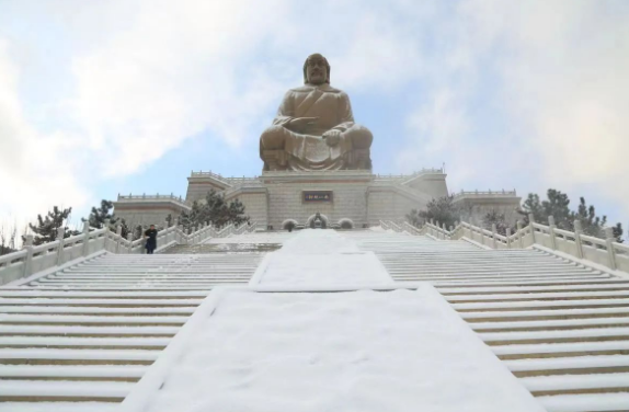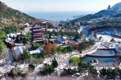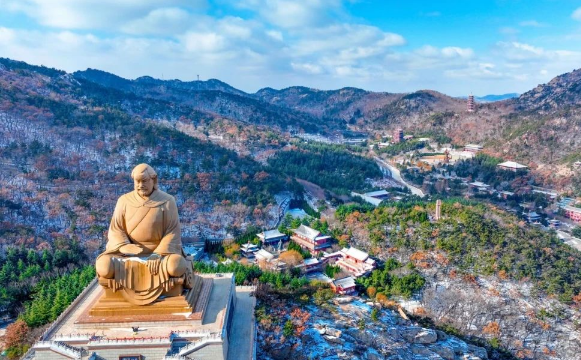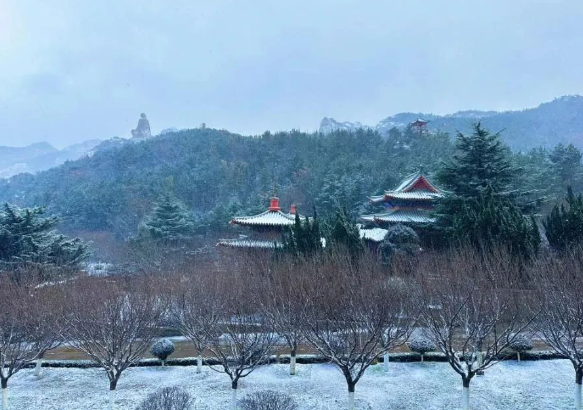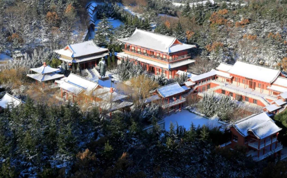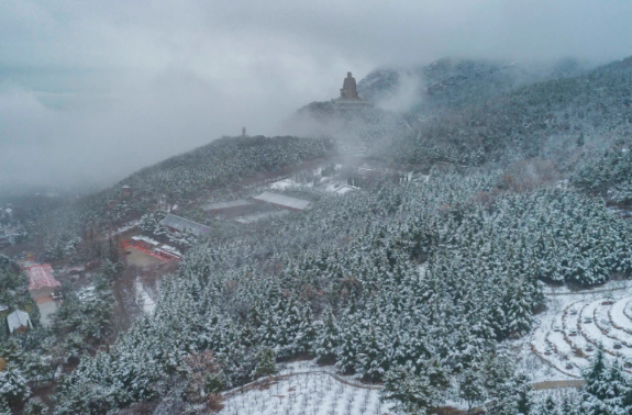 远眺赤山 映衬着鲁地的 人杰地灵 云霄降下的雪 是赤耀山林里 的一抹银装素裹