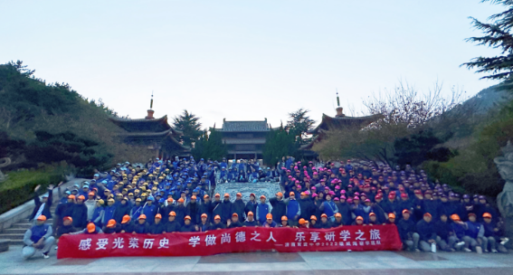 11月15日下午,来自济南育贤中学2022级威海研学团队一行三百多名师生来到了本次研学的第一站石岛赤山风景区进行胶东非遗文化体验学习。
