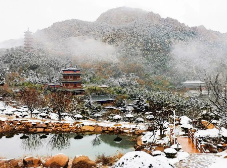 初雪已至 万事顺意 瑞雪纷纷兆祥瑞,恰似琼花飞满天 当第一片雪花落在赤山山峦之上