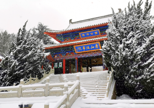 冬季雪后的赤山是银装素裹,纯净无暇的妆容,在山峦和楼阁的映衬下格外的安静祥和,一派浑然天成的景象。