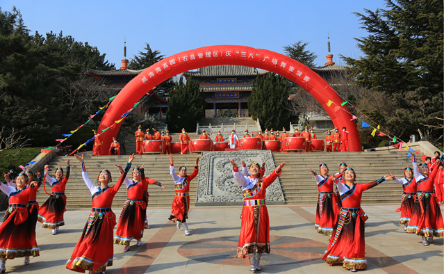 为庆祝“三八”国际妇女节即将到来,丰富广大妇女日常生活,展现新时代、新女性风采,进一步带动全民健身活动开展,3月3日,由威海海高园(石岛管理区)与石岛赤山旅游有限公司共同举办的庆“三八”广场舞表演赛在赤山风景区举行,赤山胶东妇女文化节同时正式拉开帷幕。